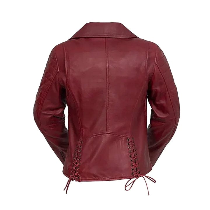 The Women’s Maroon Asymmetrical Leather Biker Jacket blends bold design with timeless allure. Crafted with meticulous precision, it’s more than just outerwear—it’s a statement piece that embodies contemporary elegance.